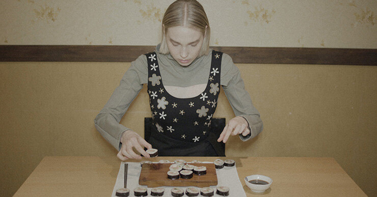 В продолжение съемки прошлого сезона, в которой одежда стала частью натюрмортов с традиционными корейскими блюдами, J.Kim представляют видео, снятое совместно с режиссером Надей Беджановой. Главная роль в нем досталась актрисе Марине Васильевой, запомнившейся нам по фильму «Нелюбовь» Андрея Звягинцева. В кадре она примеряет новую коллекцию J.Kim и пробует корейские блюда, тщательно подбирая их под одежду: корейскую спаржу – под бежевый тренч, предварительно обязательно смятый руками, рисовые пирожки чемпени – под блузку с похожим рисунком, а папоротник – под топ с аппликациями.