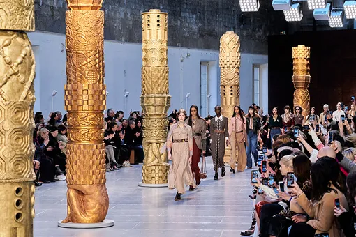 Girls support girls, women support women — один из самых дружелюбных профеминистских слоганов в арсенале модных домов. И в новом сезоне креативный директор Chloé Наташа Рамсей-Леви взялась за эту идею всерьез, пригласив к сотрудничеству сразу трех классных девушек. Саундтрек к ее показу записала Марианна Фейтфул, американская певица и актриса, ставшая яркой героиней 60-х и 70-х годов. Скульптуры, которые на шоу использовались в качестве декораций, сделала Марион Вербум. А принты, появившиеся в коллекции и на приглашениях, нарисовала американская художница Рита Акерманн. Название одной из ее картин, If You Listen Carefully... I’ll Show You How to Dance («Если внимательно меня послушаешь... я покажу тебе, как танцевать»), стало названием и самого показа. Так что командная работа, особенно когда плечом к плечу работают творческие женщины, каждая со своим видением, — это сила.