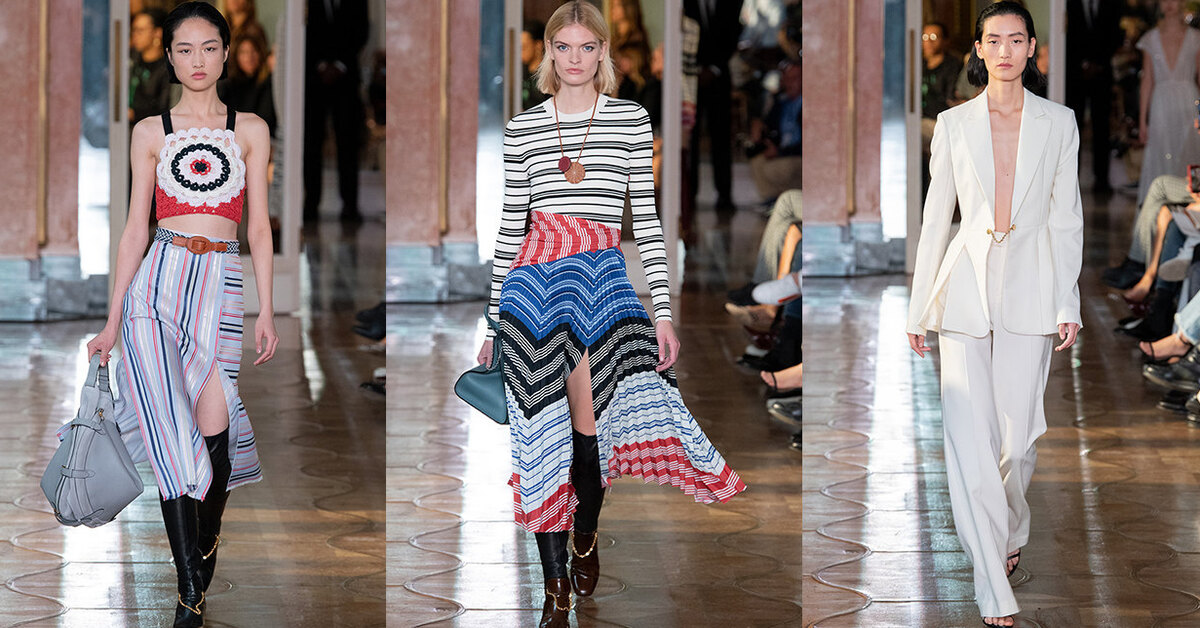 Еще одна образцовая летняя коллекция на Неделе моды в Париже — на этот раз от команды Джозефа Альтузарры. Главные роли в ней достались красочной полоске и плетению кроше: именно они оживляли даже самые простые вещи вроде лаконичных брючных костюмов светлых тонов, юбок миди на пуговицах, рубашек и облегающих трикотажных топов. Причем вязаные в технике кроше жилеты Альтузарра совсем не по-летнему надевал поверх сорочек и платьев для создания многослойности — сложно сказать, насколько это практично в весенне-летнем сезоне, но выглядит точно необычно и ярко. И кстати, к маленьким жилетам, не обязательно вязаным, вообще придется присмотреться в следующем сезоне: они, судя по прошедшим показам, станут тем самым странным и необъяснимым трендом, который мы все-таки неизбежно полюбим. Как и платья в горох — их особенно много, кстати, почему-то было именно в Париже.