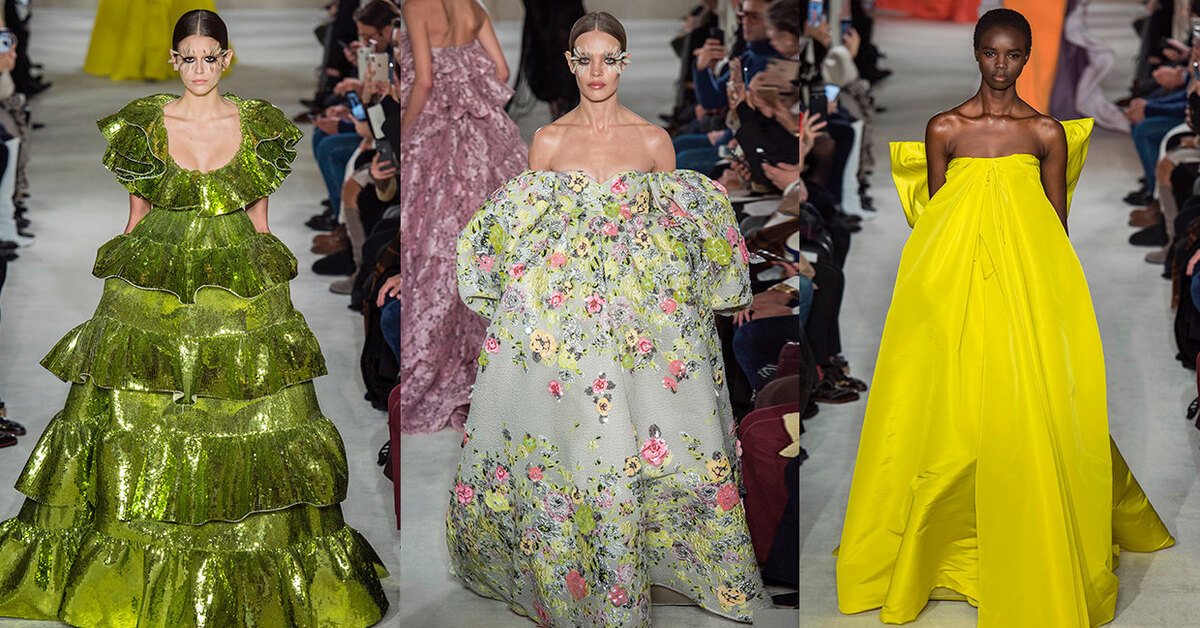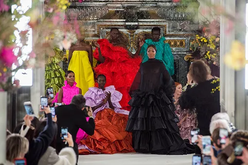 Главным событием последнего дня Недели высокой моды в Париже стал показ Valentino. От Пьерпаоло Пиччоли ждали «взрыва цвета» и фирменные однотонные платья из объемной тафты. Дизайнер оправдал ожидания — в новой кутюрной коллекции есть все: от монументальных многоярусных платьев глубокого алого, лимонного, оранжевого, изумрудного, синего и розового неона до комплектов в излюбленном Пиччоли стиле «колорблокинг». В какой-то момент подиум превратился в цветущую поляну — воздушные платья-бутоны мелькали пестрыми принтами. Наоми Кэмпбелл в абсолютно прозрачном черном наряде символично закрывала этот праздник цвета и цветов.