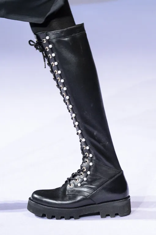 Эти «невинные» цветы у Альтузарры, цитирующего Шекспира, распускаясь, превращаются не в какие-нибудь платья-бутоны в пол, а в байкерскую униформу. Здесь и яркие кожаные брюки, и жилеты, и шнурованные байкерские сапоги на грубой подошве, плюс плотные чулки, кое-где с пущенной стрелой, и черно-белая клетка.
