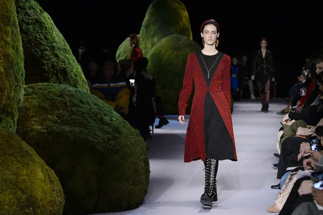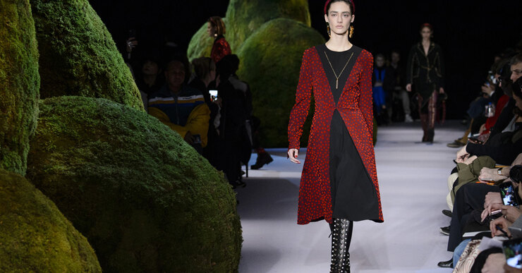 В своей осенней коллекции Джозеф Альтузарра цитирует пьесу «Макбет» Уильяма Шекспира.На мудборде дизайнера — работы художников Северного Возрождения: фламандо-голландская и немецкая живопись и ее звезды Ян ван Эйк, Питер Брейгель, Робер Кампен и Ганс Мемлинг. В качестве саундтрека — музыка французского композитора Пьер-Андре Атане. В подзаголовке к шоу старое: «Смотри цветком невинным, но будь под ним змеей». А на подиуме — изумрудный мох.