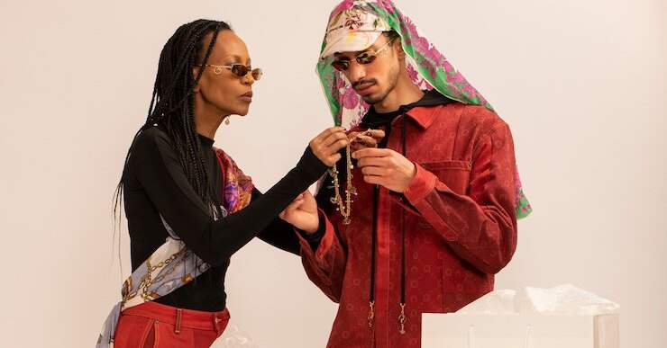 По словам самой Серр, она хотела, чтобы вещи служили людям и помогали рассказывать их истории, а не существовали сами по себе. И все же, как ни крути, это не просто документалка о случайных героях, а модная презентация. И ее цель — знакомить нас с новой коллекцией. И с этим она справляется ничуть не хуже. Из каждого эпизода фильма по специальным кнопкам можно перейти на страницы, рассказывающие о техниках и материалах, использованных в коллекции. Марин Серр — известный адепт устойчивого развития. Поэтому заметная часть тканей, из которых сшиты ее новые вещи — это остатки производства прошлых коллекций или попросту старые вещи. Платья, топы, рубашки и даже пальто сшиты из шелковых платков, килты и корсеты — из клетчатых шарфов, ткань муаре — переработанная, а кожа, из которой в технике пэтчорк сшиты пальто, куртки и брюки осталась от пошива других вещей.