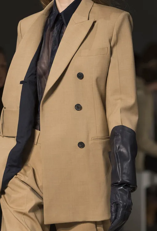 К увлечению дизайнера свободными мягкими объемами и легкой деконструкцией мы уже привыкли, но радоваться им не устали. Да и как устанешь от расслабленного шика эмансипированного мужского гардероба в стиле Лорен Хаттон? Только посмотрите на новую коллекцию: широкие брюки с защипами, безупречно скроенные жакеты с мужского плеча и двубортные пальто с наглухо застегнутыми свежими сорочками, трикотажные платья в рубчик, мягко обволакивающие тело, вместо того чтобы его обтягивать и вообще заставлять женщину как-то напрягаться, и джемперы с фактурным узором.