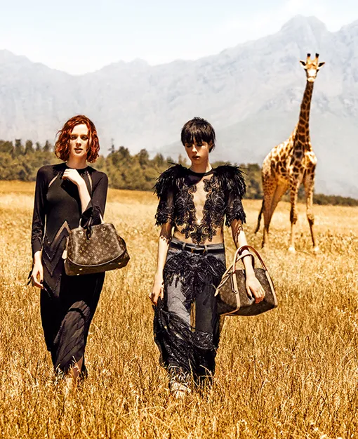 Новая рекламная кампания французского Дома неслучайно получила название «Дух путешествий» – о них в Louis Vuitton действительно знают всё! Участницами модной экспедиции в Южную Африку стали Карен Элсон и Эди Кэмпбелл, а за содержимое их чемоданов отвечала Карин Ройтфельд, стилизовавшая съемку. Особое внимание стоит обратить на сумки путешественниц: на снимках Питера Линдберга классические Speedy, Keepall и Neverfull соседствуют с новыми моделями из коллекции Monogram. Позже в рамках кампании выпустят еще и видео – остается только гадать, какие еще приключения ждут отважных британок, не побоявшихся позировать с гепардами и жирафами.