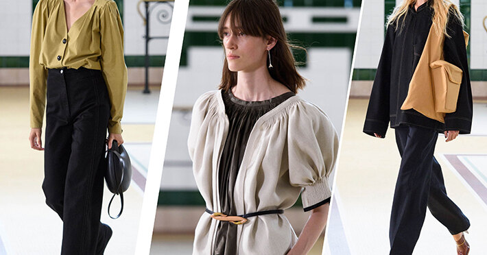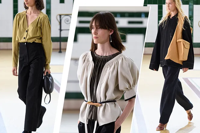 От неискушенного зрителя в адрес Кристофа Лемэра порой можно услышать: «Он показал то же, что и всегда: минимализм, спокойные силуэты, сдержанные цвета». Отчасти такую ремарку можно считать справедливой: Лемэр действительно на редкость предан своей стилистической линии, так что его коллекции можно собрать в идеально выверенный, гармоничный гардероб. Но разве это недостаток? Разве отсутствие дизайнерских метаний и нарочное игнорирование массовых трендов не есть показатель самодостаточности? Лемэр – один из тех немногих, кто не уходит в мейнстрим, но при этом остается на волне современных течений; тому, как тонко он это делает, можно только подивиться. Новая коллекция Lemaire, впрочем, получилась несколько более авангардной, чем обычно: дизайнер добавил объемные рукава-пуфы, вещи с веревками-затяжками, которые мы уже успели увидеть в доброй половине весенне-летних коллекций, мелкую плиссировку в духе Иссея Мияке – еще один тренд будущего сезона. Кажется, в этот раз дизайнер чувствовал себя чуть смелее и решил поэкспериментировать с приемами, которых избегал раньше – итог получился таким, словно он поиграл в одной песочнице с Джонатаном Андерсоном. И как всегда у Лемэра, мы могли наблюдать в коллекции игру с палитрой невероятной красоты: землистый, пудрово-розовый, лавандовый, кремовый, небесно-голубой, графитово-черный... Смотреть можно бесконечно.