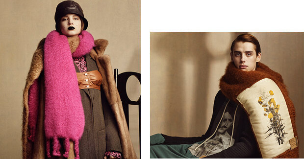 Огромные шарфы-пледы, классические костюмы и цветочная вышивка в капсульной коллекции Loewe x Charles Rennie Mackintosh