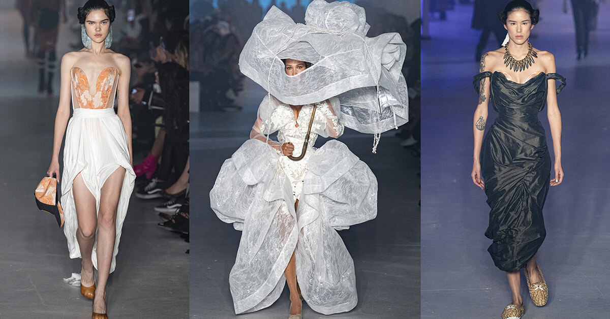 Огромные шляпы, жуткие платья и Белла Хадид в образе невесты на показе Vivienne Westwood