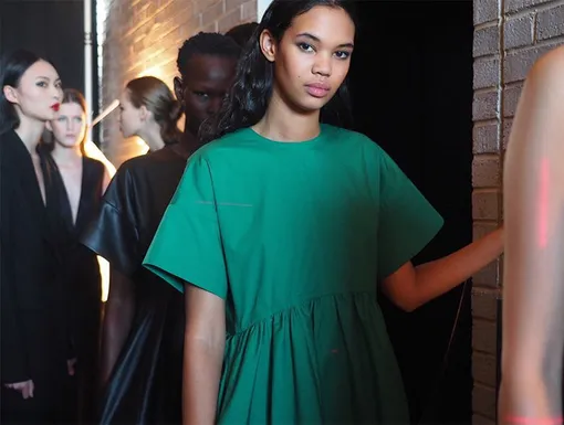 Родригес черпал вдохновение в творениях Кристобаля Баленсиаги и нарядах своей дочки, которые нашли отражение в платьях с пышной юбкой в пол, свободных туниках и топах с баской. Кажется, что дизайнер решил отказаться от следования тенденциям и просто создавать одежду на века. Если на весенне-летнем показе — 2019 были и асимметричные кроп-топы, и оверсайз-жилеты, и безразмерные пальто, и майки с металлическими пайетками, то в этой все предельно упрощено и лишено деталей. С другой стороны, иногда не хочется ничего больше, чем качественный кожаный кейп, приятная к телу водолазка насыщенного цвета и длинное шелковое платье для любого случая.