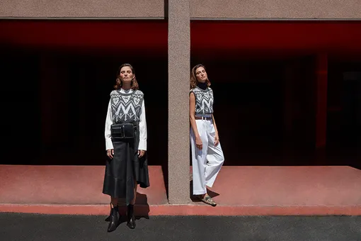Исконно мужские вещи медленно, но верно перекочевали в женские гардеробы. Следом за широкоплечими пиджаками, широкими брюками и просторными рубашками пришли и строгие теплые жилеты. Вневременная классика, мохер и ворсистое альпака, идеальна для периода, когда в «полноценных» свитерах в офисе еще жарко, но в одной лишь блузке уже холодно. Выбираем двухцветные модели — белые узоры Северной Европы на графитово-сером фоне мысленно перенесут в 70-е.