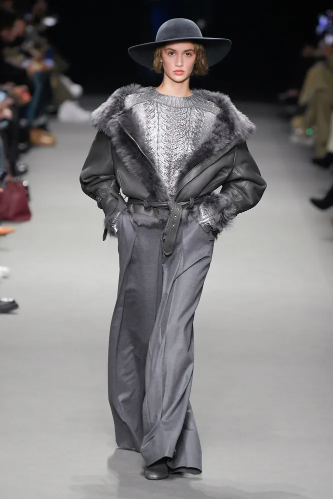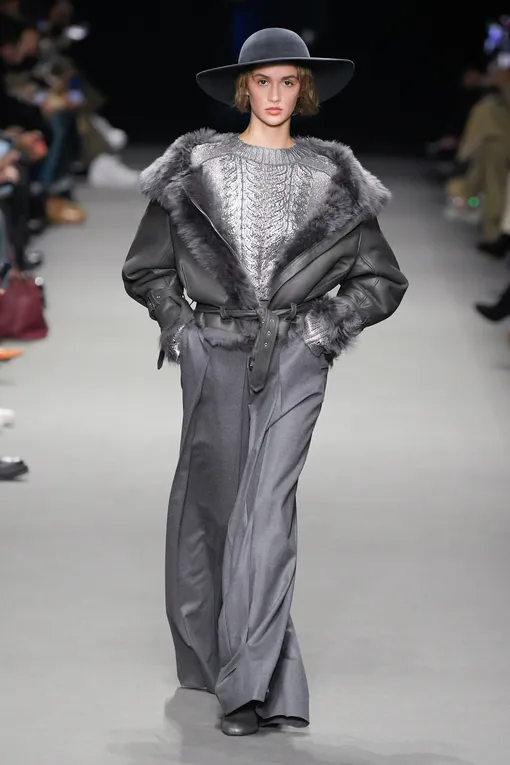 Любопытная находка коллекции — металлизированные ткани, которые в динамике выглядят, как расплавленный металл. Некоторые луки целиком состоят из них — и смотрится это весьма эффектно. Равно как и более яркие варианты, которых на показе тоже хватало. Найдутся здесь вещи и для любителей спокойствия: им понравятся луки во всех оттенках бежевого.