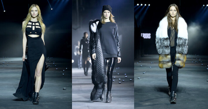 Супермодели Линдси Виксон, Саша Лусс, Джессика Стэм и Бинкс Уолтон, словно «воины Плейна», вышагивали по подиуму под грохот движущихся вагонеток и выступление Азалии Бэнкс. Футболки, украшенные мехом норки и лисы и вставками из питона и крокодила, сложносочиненные платья в пол, рок-н-ролльные сапоги с ремешками – все блестит, мерцает и переливается гранями черного. В глаза бросаются лишь вышивки с 3D-эффектом из разноцветных кристаллов Swarovski Elements и появление новых для Плейна оранжевых акцентов. Дизайнеру, впрочем, как всегда, удалось доказать, что уличная мода может быть и такой: богатой, сложной и головокружительной. Такой же, как американские горки.