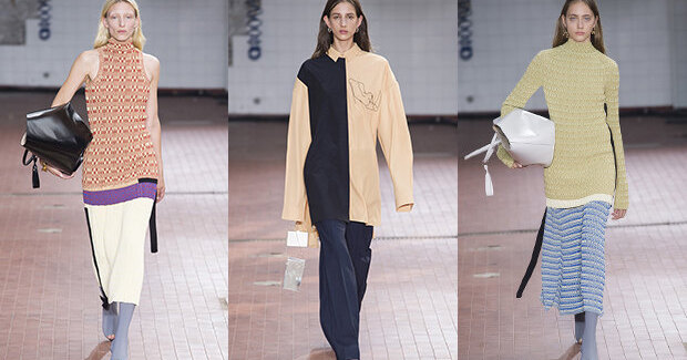 В новой весенне-летней коллекции Jil Sander заметно, как Мейеры расправляют крылья в поисках более разнообразных фасонов и оттенков, не выходя за рамки любимой ими лаконичности, доведенной до совершенства. Найти что-то лишнее или, наоборот, недостающее в образах просто не получится. Если это брюки и куртка, то максимально простого кроя, в сочетании с геометричной сумкой и лодочками. Если широкая оверсайз-рубашка, то в паре со шлепанцами на платформе: как будто вне друг друга они будут смотреться просто негармонично. Если это трикотажные обтягивающие юбки и кофты, то и обувь сделана в виде чулка, чтобы не нарушить единую форму всего образа. Добавляются и интересные детали: «рифленые» материалы, легкие, почти невесомые ткани, глубокие вырезы с воротником-стойкой, полупрозрачные носки и вышивка. Мейеры как будто нащупали почву и теперь понимают, куда нужно двигаться.