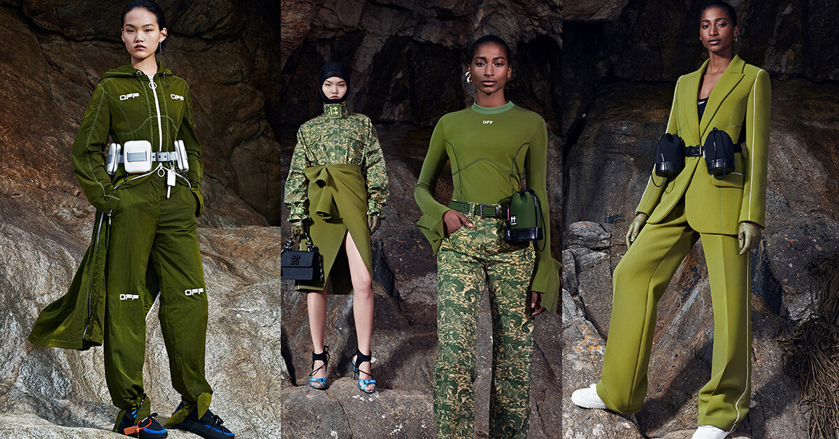 Вслед за мужской коллекцией, представленной в рамках Недели мужской моды в Париже, Вирджил Абло показал свою круизную коллекцию. На фоне кирпично-коричневатого влажного песка, мшистых валунов и пенных «барашков» на волнах модели примерили короткие комбинезоны — вольную интерпретацию гидрокостюмов серферов, шлемы для подводного плавания, велосипедки с лого (куда без них в этом сезоне!), юбки с перфорацией поверх асимметричного боди, вязаные платья-«неводы» и босоножки с затейливыми переплетениями.