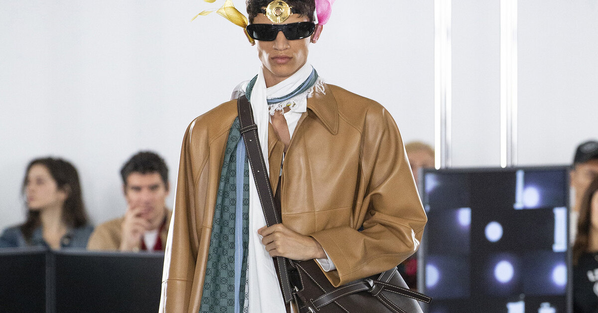 Платья-рубашки, комбинезоны и много трикотажа в мужской коллекции Loewe