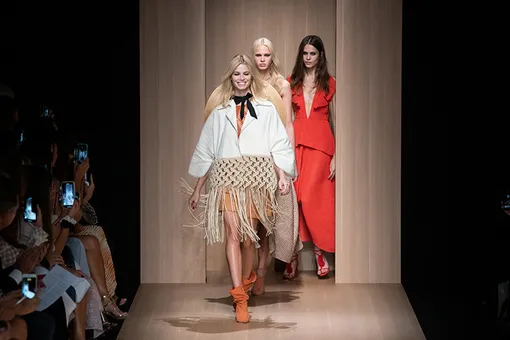 Фильмы об отважных искателях и искательницах приключений любят все. И неважно, где именно герои их ищут — в древних гробницах или где-нибудь на новомодном курорте. И неважно, кто они именно — охотники за историческими артефактами или остроумные аферисты, у которых на любой случай найдется колкая шутка. Но все-таки свою весенне-летнюю коллекцию дизайнеры итальянской марки Genny посвятили авантюристкам, живущим с законом в ладах: путешественницам, исследовательницам древностей и просто девушкам, которые открывают для себя мир. Конечно, самым очевидным выбором в таком случае стал бы стиль сафари, но команда бренда решила пойти другим путем. В одежде, которую они предлагают своим странницам, нет ничего подчеркнуто «путешественнического», этнического. Скорее это просто очень свободные вещи земных тонов, иногда напоминающие классические наряды туристов, — шорты, куртка, панама, фотоаппарат на шее, — иногда намекающие на одеяния кочевников. Кочевники в версии Genny, кстати, носят не просто свободные туники с брюками — это самая популярная трактовка такой отсылки. В этот раз им достались очень просторные, мягкие и большие брючные костюмы, в которых брюки так широки и плавны, что их легко принять за пышную юбку.