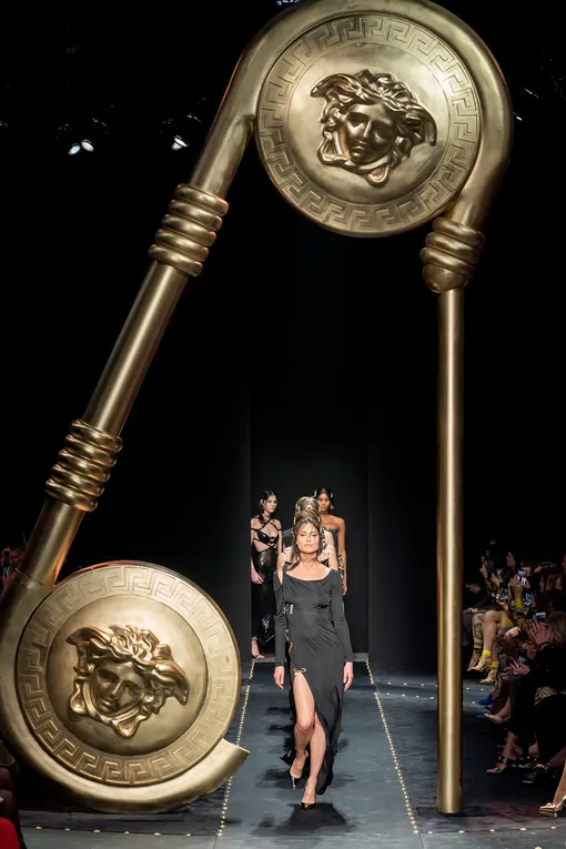 После нескольких архивных коллекцией, перепредставляющих наследие Джанни Версаче современным зрителям, Донателла Версаче неожиданно сделала ход конем, то есть взялась за тему, которая в коллекциях Джанни не возникала и не могла возникнуть никогда. Гранж. Стиль визуально дешевый, грязный, неопрятный, то есть абсолютно противоположный стилю Versace, каким мы его знаем. Но можно не волноваться: Донателла, сама поклонница роскоши, а не альтернативщины, себе не изменила. И страстные шелковые платья с вырезом до середины бедра, обнажающим подвязку кружевного цветного чулка, и шикарные шубы без всяких дыр, и отороченные кружевом крокодиловые комбинации (ах!) на подиуме были. И были все также чудно хороши.