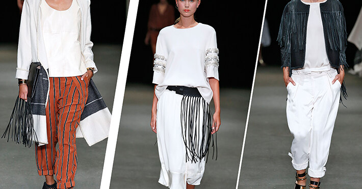 Пока все наше внимание приковано к осенне-зимним коллекциям, дизайнеры уже вовсю продумывают, в чем мы будем встречать весну и лето следующего года. Одной из первых свое видение этого относительно далекого будущего представила Кристина Экстин, креативный директор датского бренда By Malene Birger. В новой коллекции она решила по-своему интерпретировать традиционные индейские наряды с их необычным кроем и богатой отделкой. Жакеты с укороченным рукавом, туники с V-образным вырезом, джемперы, пояса и даже босоножки датчанка украсила бахромой, а топы, миди-юбки и прямые платья в пол расшила бисером и пайетками – и здесь «прототипом» также послужили индейские узоры. Впрочем, поклонницам сдержанных нарядов, которыми славится бренд, не о чем волноваться: за не менее традиционный, чем одежда коренных жителей Америки, скандинавский минимализм отвечают четкий крой и чистые цвета. Что касается последних, то и они призваны поддержать основную тему: преобладающие в коллекции белый, оливковый, темно-синий и песочный, по задумке дизайнера, должны напомнить о захватывающих дух пейзажах американского Гранд-Каньона.