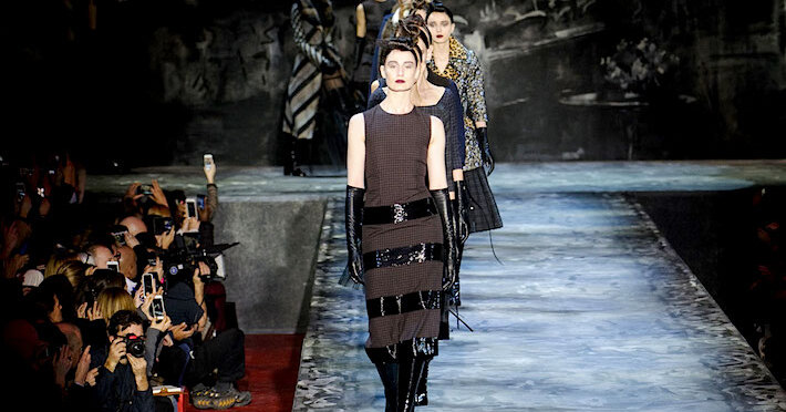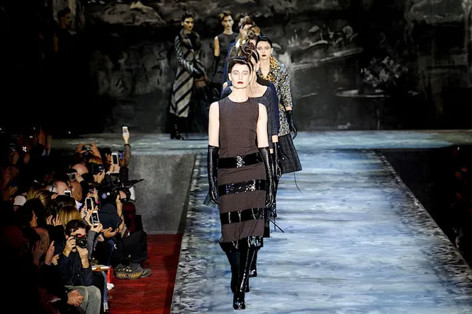 Сама коллекция, как и ее муза, оказалась вневременной и обладающей сильным характером. Она словно приглашала совершить экскурс в историю моды. Сюжет развивался стремительно и скорее напоминал калейдоскоп, чем размеренное повествование. Длинные платья в стилистике 1920-х сменялись расшитыми пайетками коктейльными образами и лаконичными силуэтами с трехмерным сиянием. Эклектичное настроение подчеркивали аксессуары – сапоги из лаковой кожи, высокие перчатки и сумки в стиле ретро. Так, по мнению Марка Джейкобса, выглядит связь времен. И нам это определенно нравится!