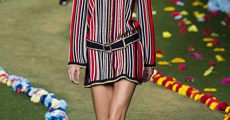 Американский дизайнер признается, что одним из главных его увлечений является старый добрый рок-н-ролл. Именно он и стал источником вдохновения для новой коллекции Tommy Hilfiger: героини весенне-летнего показа словно попали на подиум прямиком с концерта The Beatles, The Rolling Stones или Джими Хендрикса. Ностальгию по свободолюбивому духу конца 60-х – начала 70-х в полной мере передают кейпы и милитари-жакеты насыщенного бордового оттенка, лоскутные брюки-клеш, свободные платья-туники и короткие юбки а-ля Твигги, объемные свитера, остроносые ботинки с металлическим блеском – словом, все то, что когда-то носили преданные поклонницы Пола Маккартни и Мика Джаггера. Примечательно, что дочь последнего, Джорджия Мэй, как раз и открыла показ, декорации которого также были выдержаны в самой что ни на есть рокерской стилистике: оформление подиума было навеяно обложкой классического альбома «битлов» Sgt. Pepper's Lonely Hearts Club Band.