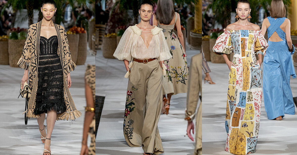 Сезон за сезоном вдохновляют дизайнеров путешествия: мы помним коллекции, посвященные Индии и Марокко, Испании. Теперь настала очередь Латинской Америки, откуда родом и сам де ла Рента, и Фернандо Гарсия — оба, вот совпадение, родом из Доминиканы. Так что настроение в весеннем сезоне снова отпускное.