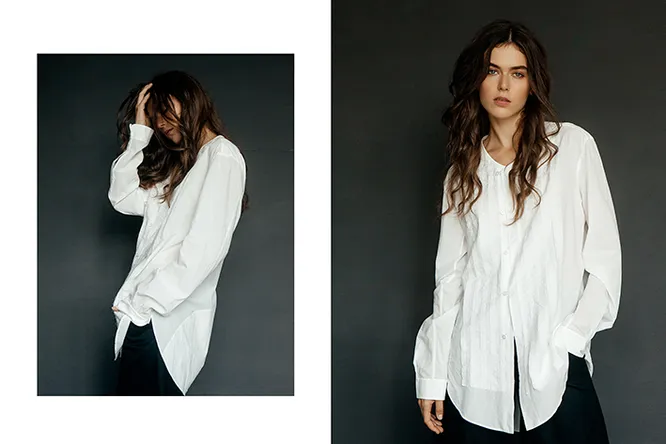 Классическая белая рубашка, напоминающая мужскую, – практически образец платоновской идеи. Это одновременно чистый лист, который служит холстом, и инструмент для создания образа – безупречного в своей простоте и одновременно наполненного смыслом. Белая рубашка – предмет самостоятельный настолько, что любые декоративные элементы смотрятся на ее фоне ненужными, суетливыми. Тем более, если речь идет о моделях, в которые и так вложена изрядная дизайнерская мысль. Самые выдающиеся образцы из московских магазинов – в нашей специальной съемке для TheSymbol.ru.