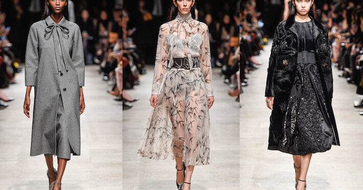 В этом году Rochas отмечают юбилей – 90-летие со дня создания марки. Прошедший несколько часов назад в Париже показ – дань уважения основателю бренда. В линии найдется немало акцентов, отсылающих к ранним коллекциям мастера. Героиня будущего сезона в представлении Дель Аква объединяет контрасты: словно летит в полупрозрачном платье, а затем облачается в строгое пальто в пол.