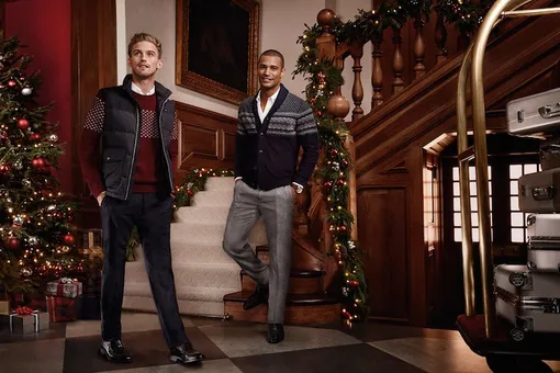 Сочетание элегантности и комфорта – философия Tommy Hilfiger обеспечивает многолетний успех неутомимого Томми. Каждый год с особым трепетом преданные поклонники ждут выхода праздничной коллекции и ее рекламной кампании про большую семью Хилфигеров, которая, кажется, способна создать рождественское настроение, несмотря на серость за окном. На этот раз герои отметят сезон зимних праздников в классических моделях: женская линия состоит из вечерних платьев, уютного свитера с пайетками и лаконичных аксессуаров. Мужчинам Хилфигер предлагает облачиться в шерстяные костюмы, базовые сорочки, жаккардовые свитера и брюки оттенков металлик и индиго.