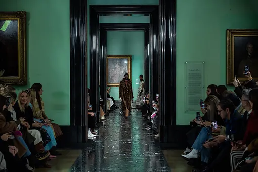 Эрдем Моралиоглу — тот еще весельчак. Его, как и многих британских дизайнеров, тянет к вещам по-викториански мрачным. Так что и зимой, и летом на его вещах цветут темные розы, задумчиво колышутся черные перья, а платья закрыты и не по-сегодняшнему скромны — исключительно в плане длины и вырезов, а не богатства декора. Потому что на отделку дизайнер не скупится никогда. Вот и на этот раз к просто цветочным принтам, представленным в коллекции во всем изобилии, добавились заодно узоры, вышитые жемчугом, искусственные розы (разумеется, черные), аппликации, резные жаккарды, россыпи пайеток и не только. Так что, пусть настрой у дизайнера и неизменно мрачный, выглядит все неизменно красиво — и очень, очень нарядно.