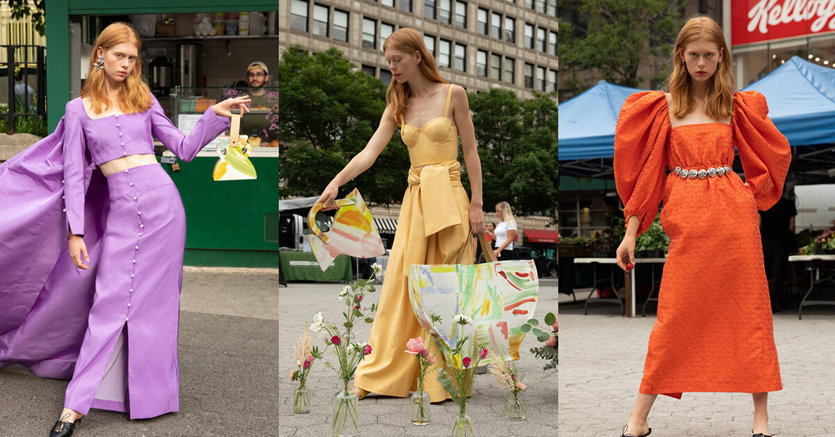 Рукава-буфы, топы со шлейфом и пуговицами-жемчужинами и сумки-ракушки в коллекции Rosie Assoulin