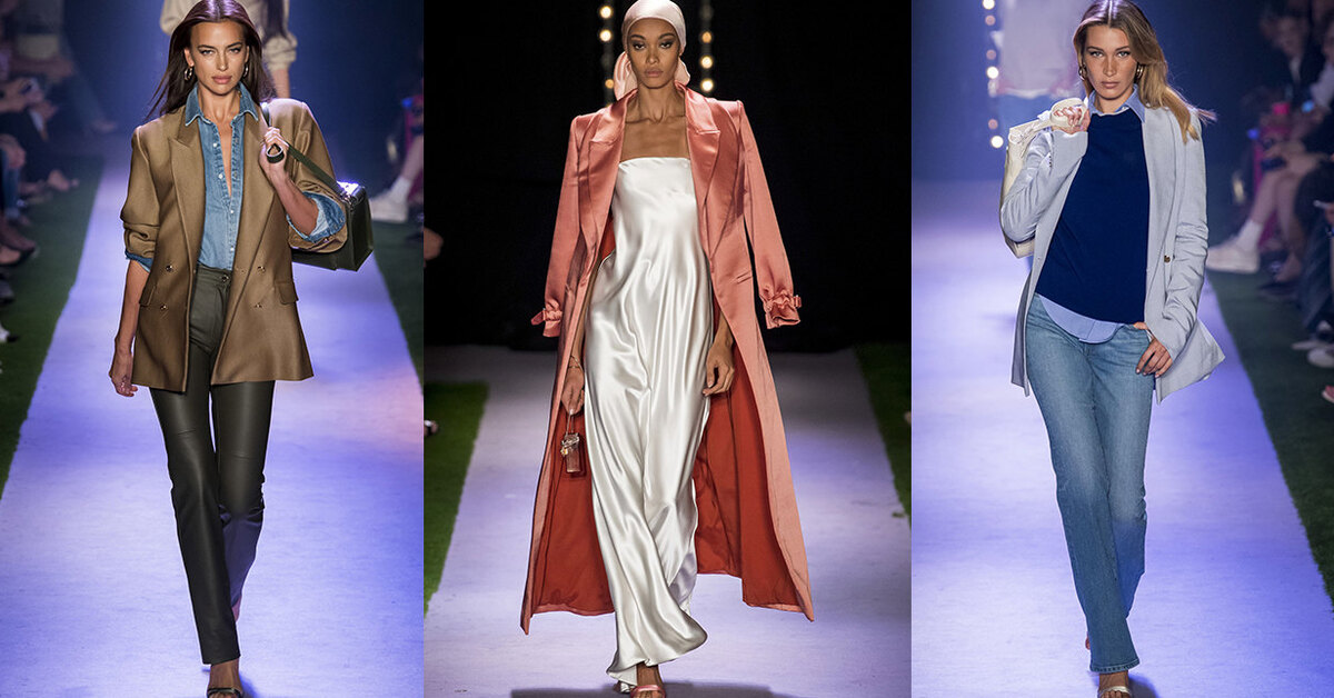 О том, что Белла Хадид теперь блондинка, мы узнали еще в августе — тогда в сети появились ее первые снимки в новом образе. И все же, увидев модель с распущенными волосами на показе Brandon Maxwell, растерялись. Потому что на подиум вышел, кажется, совершенно другой человек, в котором известную нам младшую Хадид попросту не узнать! Неудивительно, что именно это явление новой прически народу и стало главным впечатлением от показа. Модельный состав шоу вообще впечатляет: здесь и Ирина Шейк, и Грейс Элизабет, и Ясмин Вейналдум, и Кэндис Свейнпол.