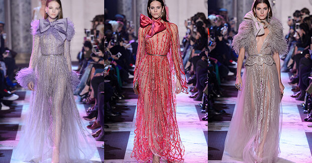 Ориентируясь на клиентуру из арабских шейх и голливудских звезд первой величины, дизайнер Эли Сааб в каждом новом сезоне рассказывает своей аудитории еще одну сказку из книги «Тысяча и одна ночь» про восточных принцесс, дворцы в пустыне, несметные сокровища и роковые страсти. А по ходу рассказа — щедро осыпает женские тела ювелирными вышивками, бисером, стеклярусом, пышными перьями какаду и бахромой, повязывая этот «букет» пухлым шелковым бантом. В новом сезоне его шелковые мантии, платья-бюстье и блестящие боди со шлейфами из шелка, кожи, органзы, кашемира и велюра с повышенным содержанием сахара — В сладкой палитре из клубничной карамели, сливочного персика, крем-брюле и черничного йогурта.