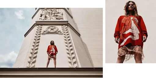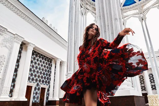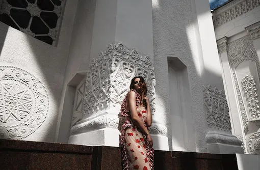 Новый лукбук Aizel.ru посвящен Москве 30-х и 50-х – той, что во многом утратила прежний облик, но сохранилась на фотографиях, кинолентах, а также в различных документах и коллективной памяти ee жителей. В окружении павильонов ВДНХ ностальгически праздничное настроение образов, составленных стилистом Аленой Исаевой, многократно усиливалось. Передать ощущение радости от города ей помогла модель Елена Мельник, примерившая платья Christopher Kane, Simone Rocha, Erdem, а также новинки Gucci – модного Дома, впервые представленного в российском мультибрендовом интернет-бутике. Красный цвет и архитектурные формы вещей, выбранных для съемки авторства Вана Моссевельде, более известного как Van Mossevelde + N, еще сильнее связали ее со столь любимым москвичами городом.