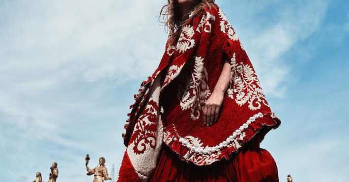 Новый лукбук Aizel.ru посвящен Москве 30-х и 50-х – той, что во многом утратила прежний облик, но сохранилась на фотографиях, кинолентах, а также в различных документах и коллективной памяти ee жителей. В окружении павильонов ВДНХ ностальгически праздничное настроение образов, составленных стилистом Аленой Исаевой, многократно усиливалось. Передать ощущение радости от города ей помогла модель Елена Мельник, примерившая платья Christopher Kane, Simone Rocha, Erdem, а также новинки Gucci – модного Дома, впервые представленного в российском мультибрендовом интернет-бутике. Красный цвет и архитектурные формы вещей, выбранных для съемки авторства Вана Моссевельде, более известного как Van Mossevelde + N, еще сильнее связали ее со столь любимым москвичами городом.