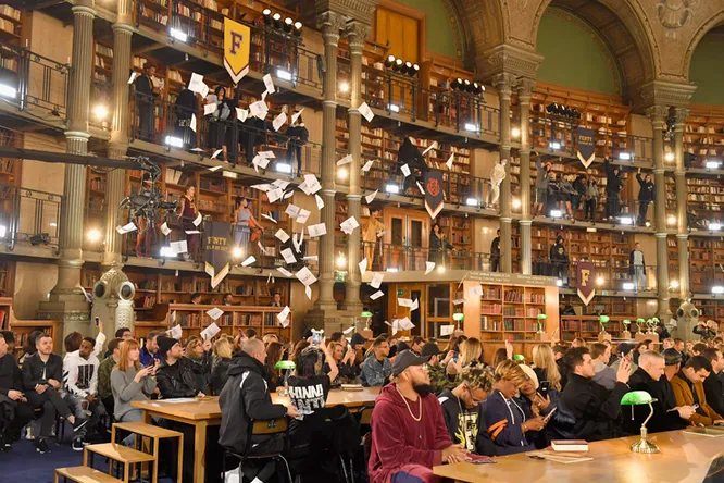 Не теряя времени в ожидании, когда с верхней позиции рейтинга ее сместит какая-нибудь восходящая звездочка, Рианна превращает в золото все, рядом с чем появляется ее имя. Новая сезонная линейка Fenty Rihanna х Puma, представленная вчера в рамках Недели моды в Париже, тому яркий пример. Если весной певица играла в современную Марию-Антуанетту, то сейчас она мечтает снова сесть за парту. Гостей героиня дня собрала в Национальной библиотеке Франции и устроила там беспредел, разрешив своим «студентам» «забить» на обязательную школьную форму и отдаться уличному спортшику, облачившись в университетские куртки, спортивные костюмы, поло, трикотажные платья, яркие боди, треники, олимпийки и кроссовки.