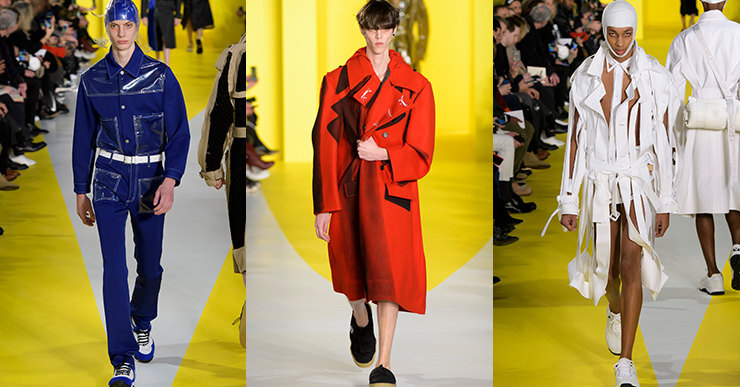 Ярким солнечным бликом в череде показов Парижской недели моды стала дебютная мужская коллекция Джона Гальяно для Maison Margiela. Вдохновением для дизайнера явно был подводный мир: недаром на канареечно-желтый подиум в Туренском зале Музея армии вышла целая армия «амфибий» в купальных шапочках и пластиковых шлемах, на некоторых из них красовались фигурные плавники.