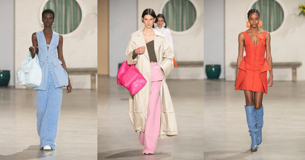 Ткани на показах Жакмюса еще никогда не было так много — ощущение непривычное. Открытые платья, которые на теле держатся благодаря телесным изгибам и тонким веревочкам, уступили место брючным костюмам — чуть более свободным, чтобы их можно было назвать классическими, но для работы вполне подходящим. Как и кожаные кюлоты, широкие трикотажные брюки, длинные теплые платья. А одной из главных деталей стали огромные карманы, иногда закрепленные на съемных поясах, — что это, как не отсылка к рабочей, униформенной одежде? И это на показе Жакмюса, который был синонимом вечного праздника? Чудные дела. Компенсирует неожиданную утилитарность привычно солнечная цветовая гамма: от какого-то особенно нежного оранжевого до небесно-голубого.