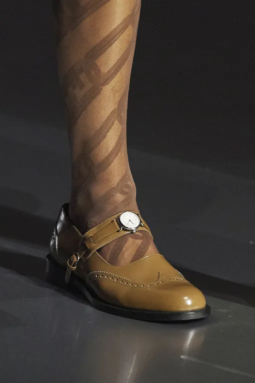 Дизайнеры были решительно настроены исправить эту несправедливость. Настолько, что к этому сезону мужская мода не только догнала по зрелищности женскую — она перегнала ее. Пока в женских коллекциях старательно отрабатываются вечные темы и проверенные силуэты, в мужских исследуются новые (или, как мы уже выяснили, хорошо забытые старые) территории. Причем чаще всего вау-эффект достигается за счет простой игры с пропорциями и деталями кроя вполне понятных, конвенционально маскулинных вещей. В совершенстве этим приемом овладела Сильвия Вентурини-Фенди: если в своей весенне-летней коллекции для Fendi она укорачивала пиджаки и рубашки, то в осенне-зимней решила удлинить свитеры и сделать кокетливые геометричные вырезы у них на груди — эдакие мужские декольте. У классического пиджака она лихо «отрезала» воротник, сделав вырез глубже, но оставив узкие лацканы, а вполне себе классические броги дополнила трогательными ремешками, превратив их в туфли Мэри Джейн. Правда, если присмотреться, на ремешках можно найти часы (тоже, кстати, конвенционально мужской атрибут). Казалось бы: маленькая деталь, а вещь сразу становится «вирусной» в соцсетях.
