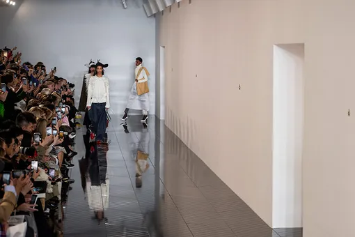 О классической элегантности и ностальгии по тем временам, когда она была в ходу, на осенне-зимних показах говорили многие дизайнеры. По-своему взялся за ту же тему, похоже, и Джонатан Андерсон. Конечно, серьезности и роскоши Dolce & Gabbana от Loewe ждать не стоит — Андерсон совсем не из тех дизайнеров, которые хороши в классическом видении классики. Но ладные пальто, сидящие точь-в-точь по фигуре, белоснежные кейпы с кружевными блузами, шелковые юбки и платья он все-таки показал.