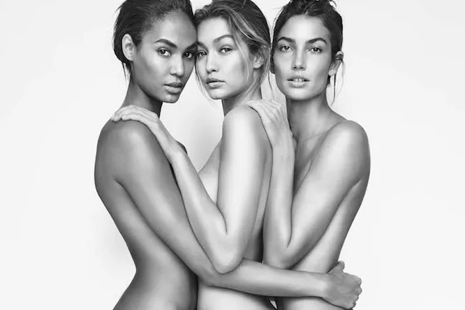 Джиджи Хадид, Джоан Смоллс и Лили Олдридж в новой рекламной кампании Stuart Weitzman авторства Марио Тестино.