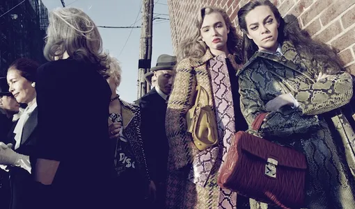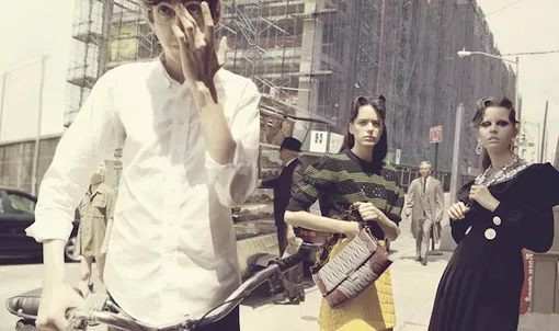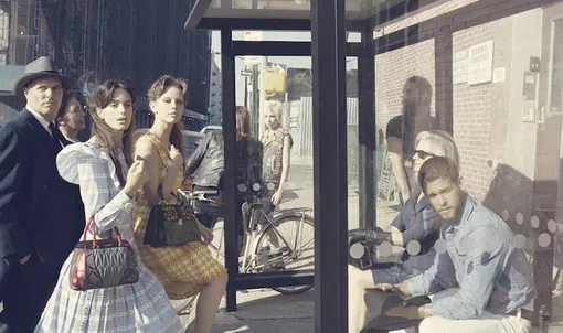 Четыре молодые девушки на снимках Майзела – это модели Мэддисон Браун, Хейли Гейтс, Миа Гот и Стэйси Мартин. Фотограф запечатлел их в образах из осенне-зимней коллекции Miu Miu, которые гармонично перекликаются с холодным индустриальным веянием города. Вместе с тем, улицы Нью-Йорка радушно принимают постановочный streetstyle и переносят девушек на несколько десятилетий назад. Безупречно одетые дамы на переднем плане и «случайный» прохожий господин на их фоне – часть той «субъективной реальности», на создание которой Miu Miu претендуют своей новой съемкой.
