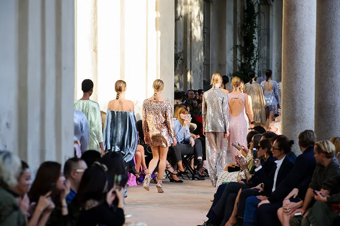 Супермодели в бикини, перьях и пайетках на подиуме Alberta Ferretti в Милане