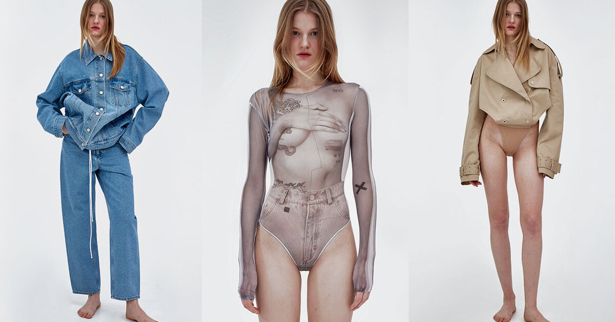 Тату-принты украшают верхнюю одежду, рубашки, топы, платья, нижнее белье и кружевные комбинезоны. Гамма коллекции осталась в рамках привычных для TTSWTRS белого, бежа и голубого, а вот к традиционным материалам – шелку, микромодалу, сетке и дениму – добавились прочные полиуретановые ткани.