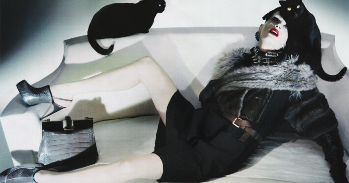 Есть несколько визуальных атрибутов, присутствие которых гарантированно обещает поднять продажи и вообще всяческий хайп вокруг того или иного бренда. И если еще лет 10 назад главная мантра маркетологов звучала как «Sex sells», то сегодня спектр интрументов стал куда шире. Впрочем, есть вещи, которые не выходят из моды, причем во всех смыслах слова – например, котики. Они не только появляются в качестве принта на одежде или аксессуарах, но и становятся героями модных съемок, рекламных кампаний и лукбуков. Мы собрали самые яркие примеры, которые доказывают – коты и кошки служили действенным рекламным инструментом еще задолго до того, как это стало мейнстримом.
