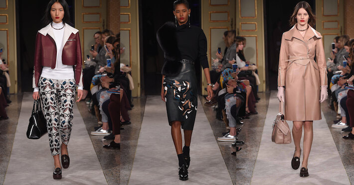 Местом проведения показа женской коллекции Tod’s стал миланский дворец Palazzo Litta. Такой выбор был сделан не случайно: помпезные интерьеры XVIII века как нельзя лучше подчеркнули современную концепцию новых моделей Алессандры Факинетти. Основной акцент вновь был сделан на использование кожи, уникальная выделка которой в очередной раз подтверждает, что мастера Tod’s – лучшие ремесленники. Команда дизайнера удивила искусством работы с прихотливым материалом, представив юбки необычного кроя, скульптурные платья и тренчи с резными узорами из кожи. У Tod’s снова получилось создать идеальную линейку образов на каждый день, обладающих бесспорной притягательностью.