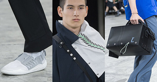 Лукас Оссендрейвер, после ухода Альбера Эльбаза солирующий в «мужской половине» Дома Lanvin, на посту уже одиннадцатый год. Он может рассказать все о том, как мужская мода изменилась за последнюю декаду, и легко спрогнозирует возможные перемены в отрасли еще на десятилетие вперед. Но абсолютно уверен, что в двадцатых, так же, как в нулевых, несмотря ни на что главными предметами мужского гардероба по-прежнему будут хорошо скроенный костюмный пиджак — такой вписывается и в парадный, и в расслабленный повседневный образ, а также пара выходных брюк и пара спортивных. Последние — на каждый день. Именно на этих трех китах неизменно держатся все его эксперименты по созданию вещей-гибридов на стыке классической и спортивной моды. На этот раз в ход идут костюмы в клетку родом из 1950-х годов, которые дизайнер миксует с мешковатыми спортивными брюками, куртками-бомберами и рабочими комбинезонами и которые велит носить с панамами, кроссовками и поясными сумками.