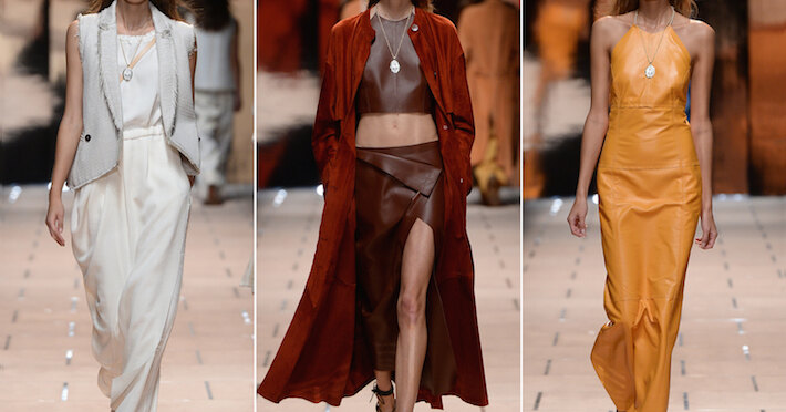 В своей весенне-летней коллекции Trussardi достигает абсолютной расслабленности: легкие пальто, брюки и юбки, которые без труда бы уместили под собой ещё одного человека, дают широкие права и свободы. Всем, кто предпочитает ей строгость форм, креативный директор бренда Гайя Труссарди уготовила вещи-антиподы: облегающие платья из кожи тыквенного цвета или юбки-макси с внушительным разрезом.