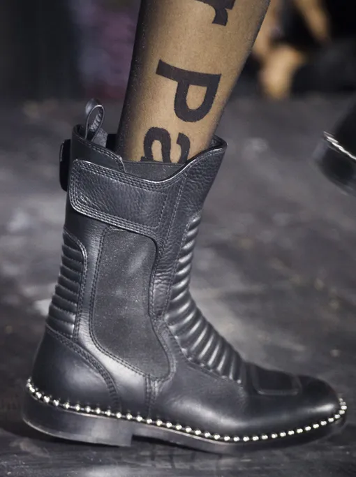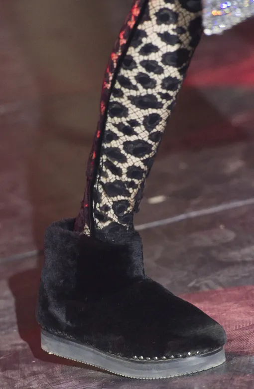 В качестве фундамента луков - шипованные по периметру кожаные казаки, байкерские сапоги и, внимание, наше все из 2000-х — короткие меховые угги. Ой, все.