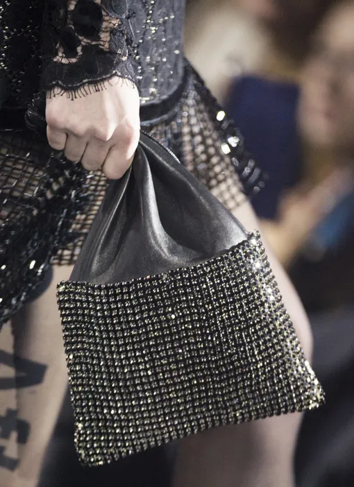 Также в галантерейном блоке Alexander Wang — переливающиеся блестками вечерние мини-версии sack bag, которые на заре нулевых заменяли нам клатчи. Плюсом - борсетки и кожаные сумки-пакеты.