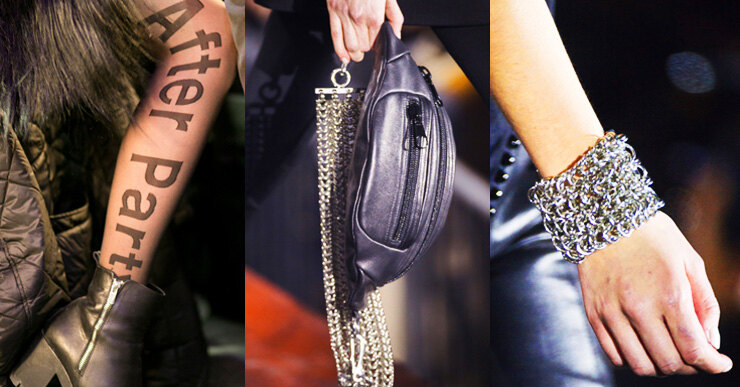 В фокусе: тяжелые цепи, кожаные «бананы» и statement-капрон с шоу Alexander Wang